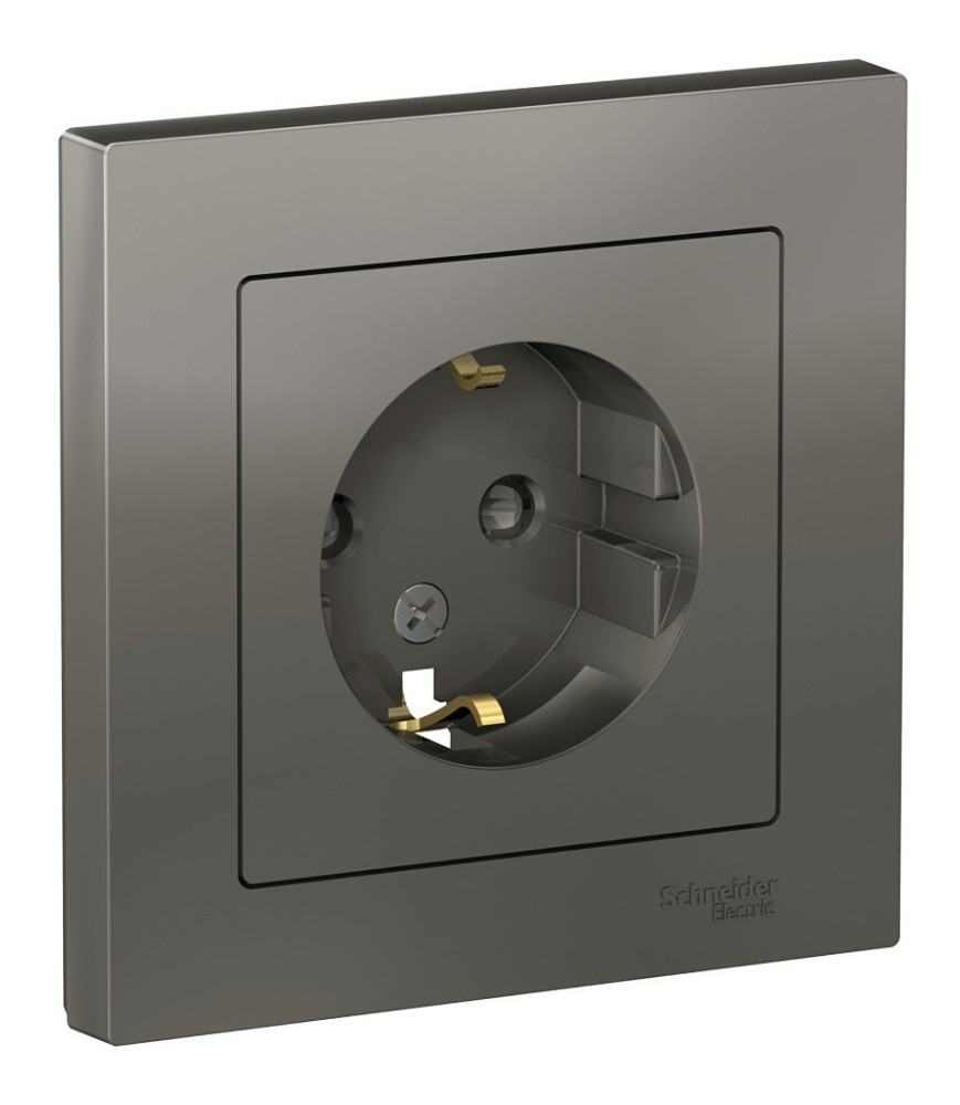 Розетка Schneider Electric AtlasDesign (в сборе, цвет сталь) одинарная с заземлением и без шторок подходит для сетей 250 В, на ток 16 А.- Заземляющий контакт обеспечивает дополнительную защиту от удара электрическим током. При наличии заземления электрический потенциал уходит в землю, защищая человека.- Лицевые детали из качественного ABS-пластика, устойчивого к царапинам и УФ-излучению.- Изделие поставляется в комплекте с рамкой того же цвета