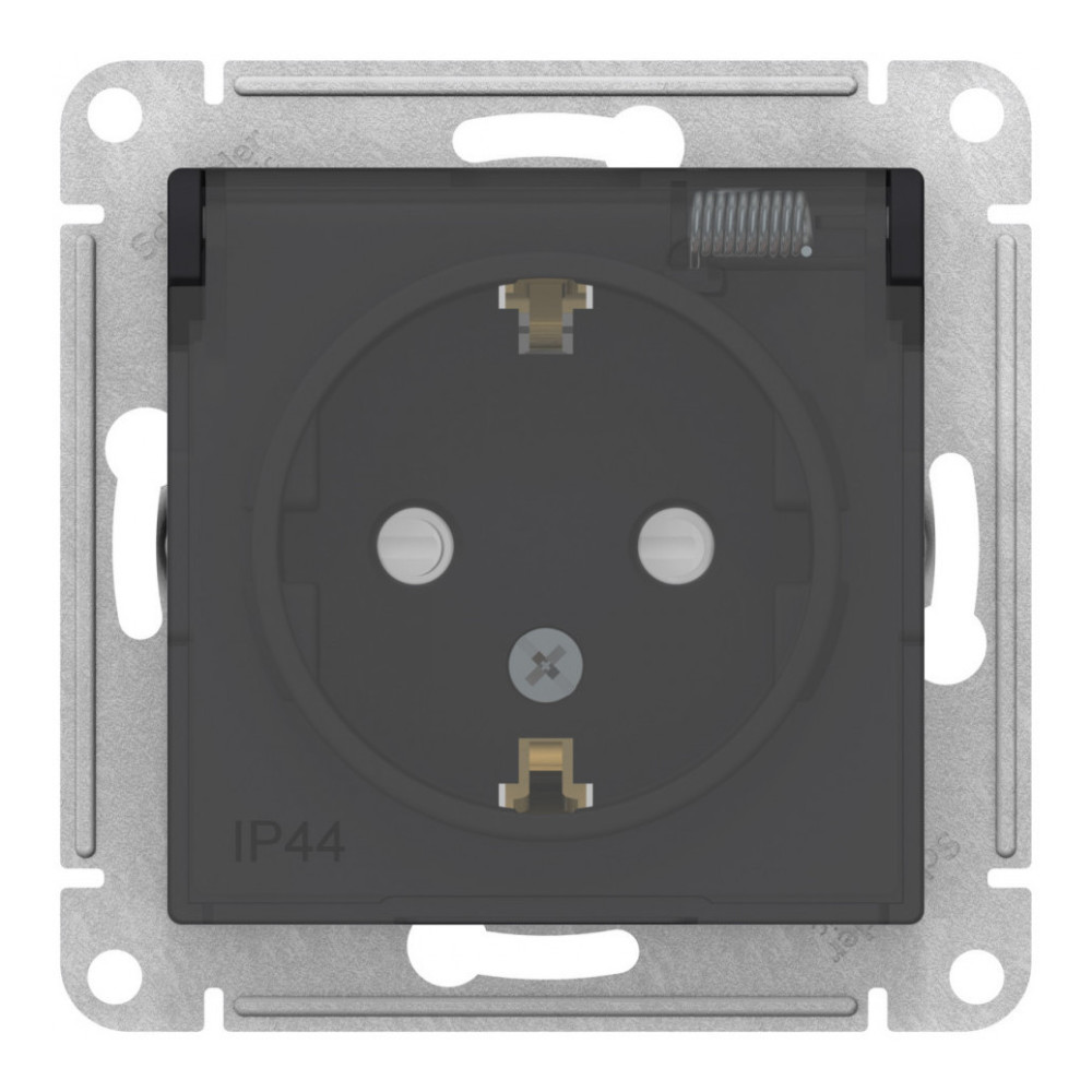 Розетки с заземлением со шторками с крышкой карбон SE AtlasDesign ATN001046
