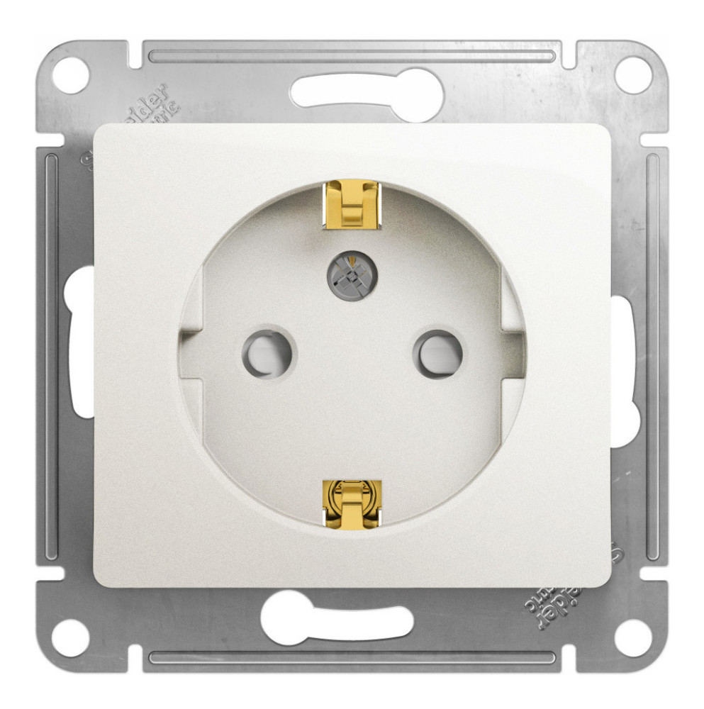 Механизм Schneider Electric Glossa (цвет перламутр) розетки одинарной с заземлением и шторками подходит для сетей 250 В, на ток 16 А.- Заземляющий контакт обеспечивает дополнительную защиту от удара электрическим током. При наличии заземления электрический потенциал уходит в землю, защищая человека.- Выполнен из материала PС+ASA, стойкого к УФ-излучению и появлению царапин.- Эргономичные клеммы розеток расположены в один ряд