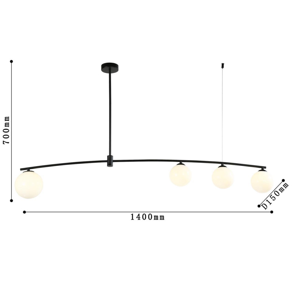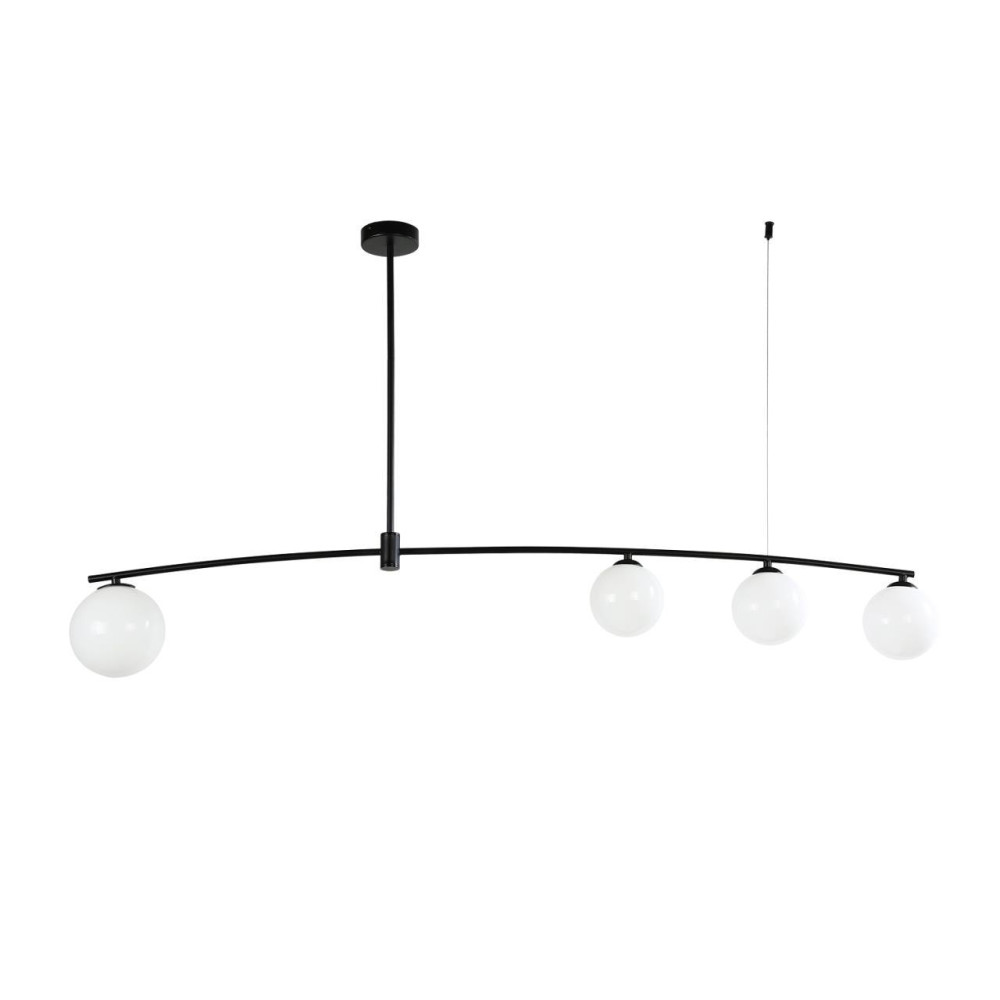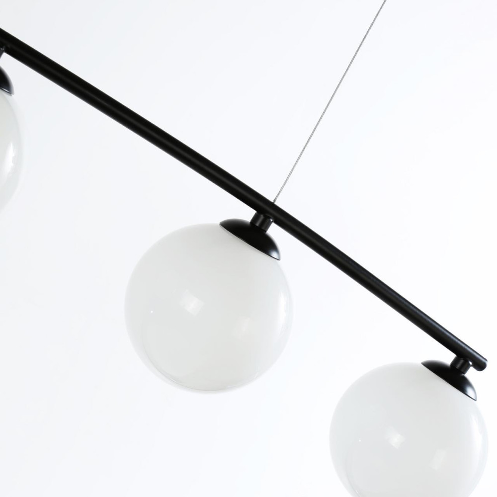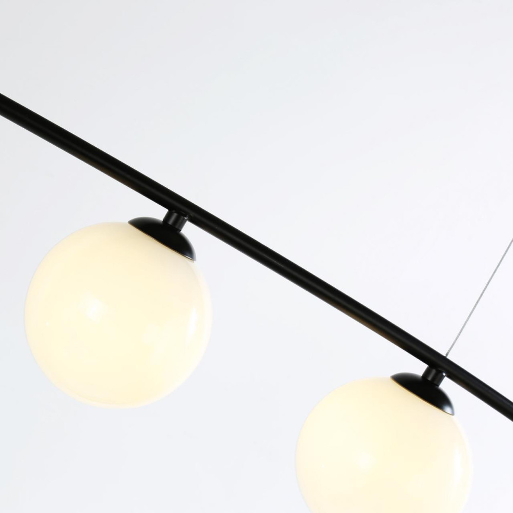 каркас матового черного цвета, плафоны из выдувного белого стекла дуплекс, лампу G9 можно менять