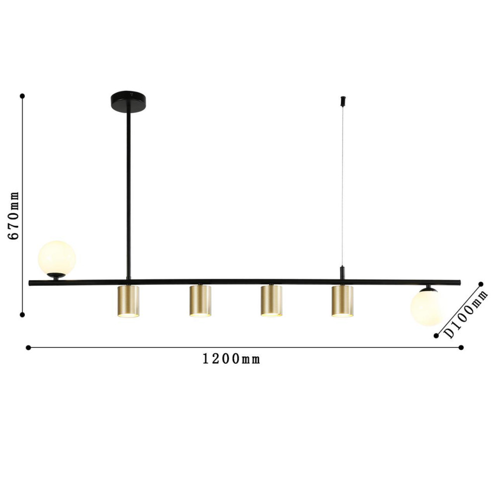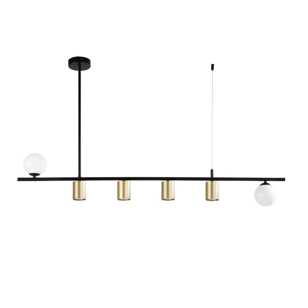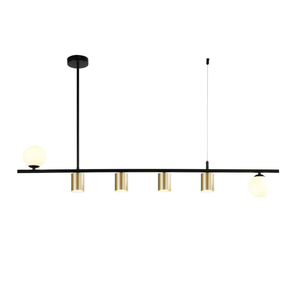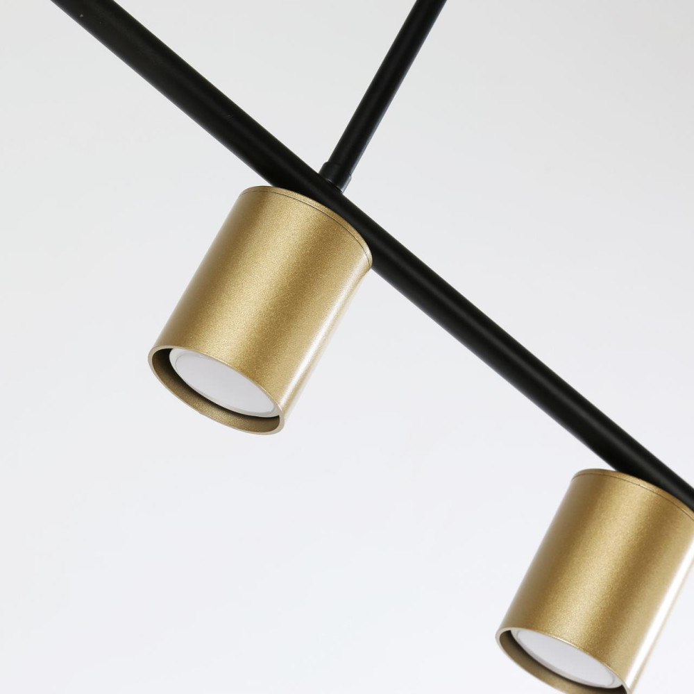 каркас матового черного цвета, два вида плафонов из белого стекла и металла цвета золота, лампы G9 и GU10 можно менять