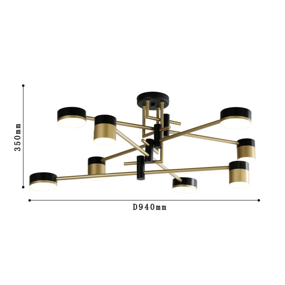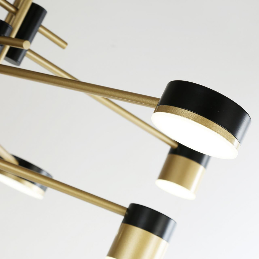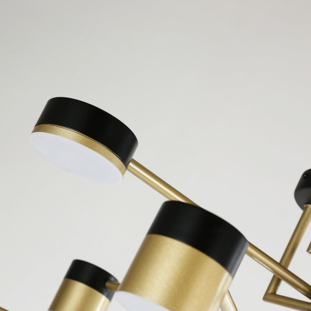 каркас светильника сочетает два цвета - черный и золото, плафоны цилиндрической формы разного диаметра
