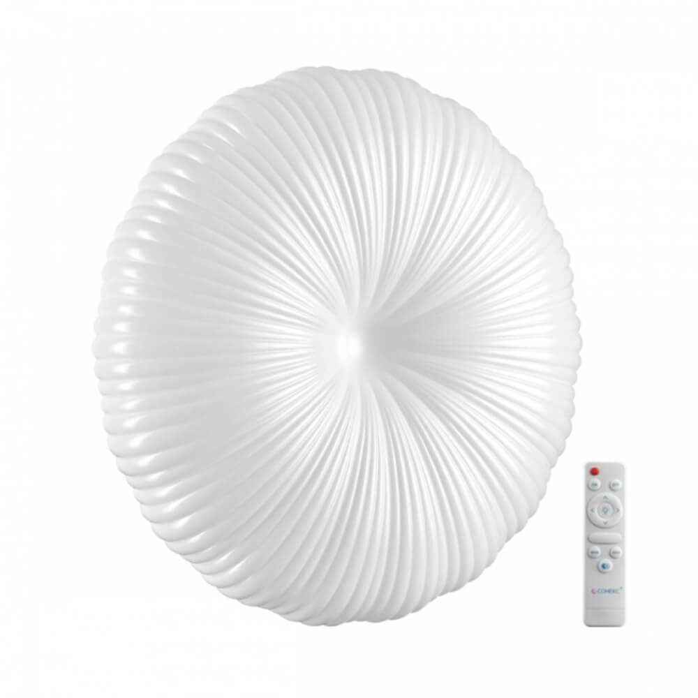 Светильник 7678/EL линии ANIX состоит из металлического основания (базы) и пластикового рассеивателя. Материал рассеивателя - высококачественный пластик марки PMMA 2.0 белого цвета с матовой поверхностью. Пластик обеспечивает светильнику равномерное рассеивание и хорошее светопропускание. Форма плафона: круглая, декорирована рельефом из пластика в виде узора белого цвета. Степень защиты IP43 позволяет использовать светильник в определенных зонах влажных помещений. В комплект входит заменяемый LED модуль с линзами, мощностью 70Вт, которая соответствует лампе накаливания 610Вт. А также пульт ДУ (с креплением на стену), с помощью которого осуществляется плавное изменение цветовой температуры 3000-6000К, изменение яркости, переход в режим переключения теплого/белого/холодного/ночного света. Светильник имеет функцию "память"