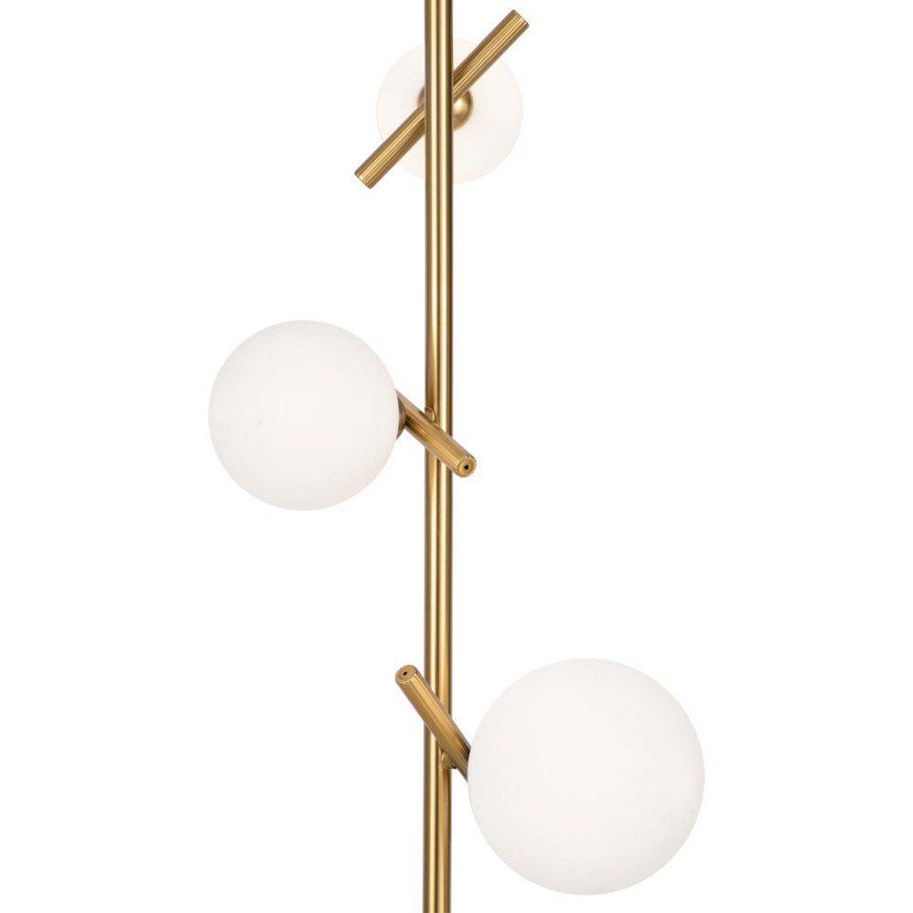 Материал арматуры — рифленый металл, цвет — латунь. Плафоны-сферы из белого матового стекла для мягкого заливающего света. Воздушный образ плафонов, строгие тонкие линии арматуры придадут интерьеру изящество и легкость. Высота подвесов регулируется. Источник света — лампы с цоколем G9