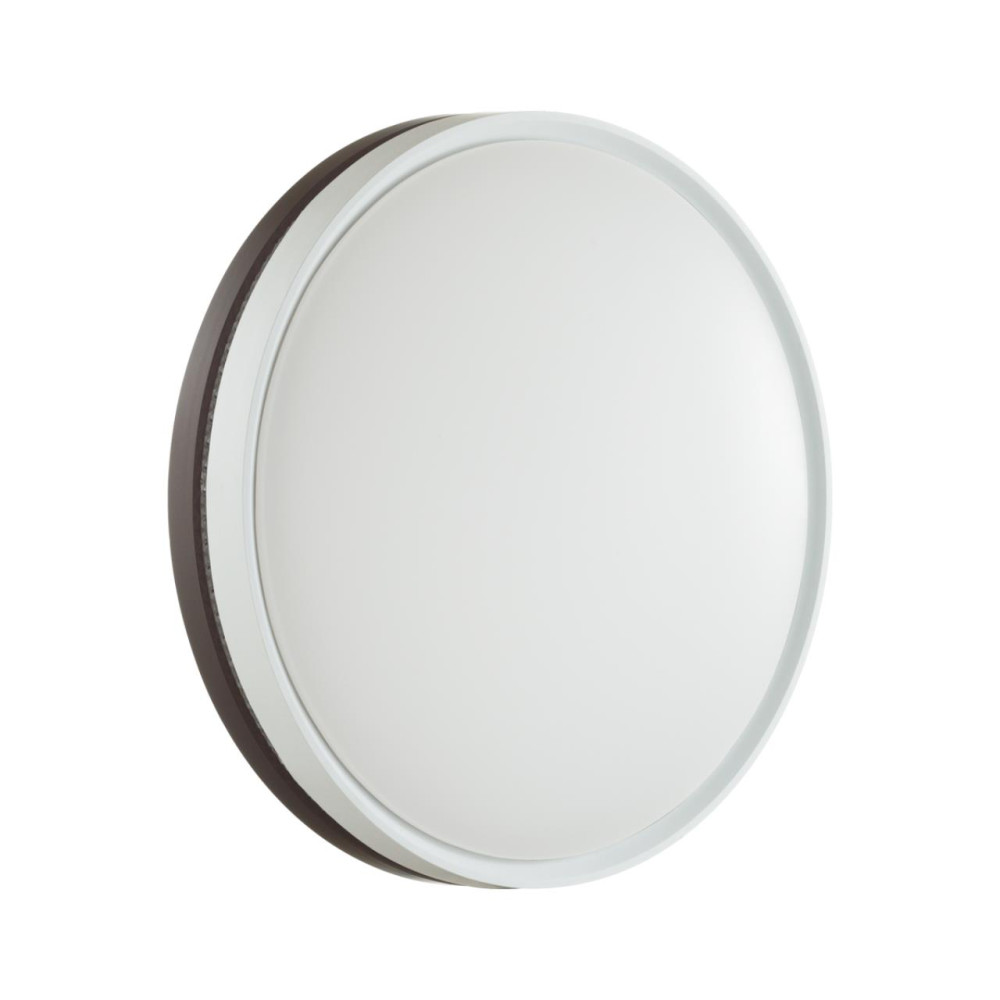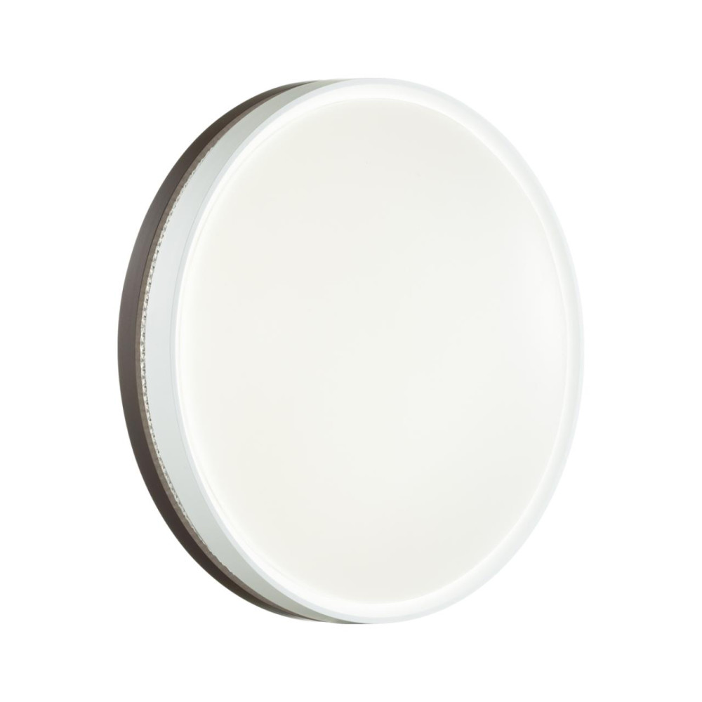 Светильник 7668/DL линии NOHAVA BROWN состоит из металлического основания (базы) и пластикового рассеивателя. Материал рассеивателя - высококачественный пластик марки PMMA 2.0 белого цвета с матовой поверхностью. Пластик обеспечивает светильнику равномерное рассеивание и хорошее светопропускание. Форма плафона: круглая, декорирована ободом из пластика темно-коричневого цвета у основания светильники и белого цвета у внешнего края. Обод украшен прозрачной декоративной вставкой "под хрусталь". Степень защиты IP43 позволяет использовать светильник в определенных зонах влажных помещений. В комплект входит заменяемый LED модуль с линзами, мощностью 48Вт, которая соответствует лампе накаливания 460Вт. Источник света имеет комфортную цветовую температуру 4000К (белый свет)