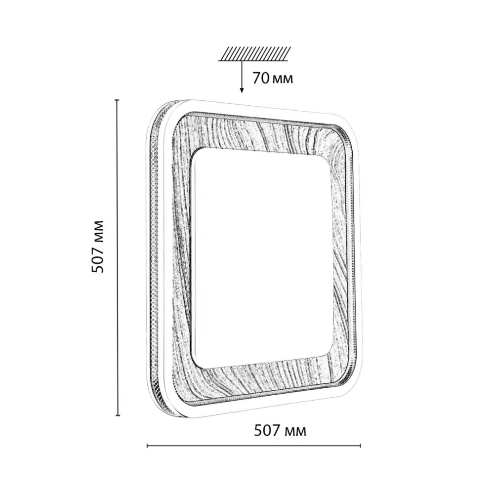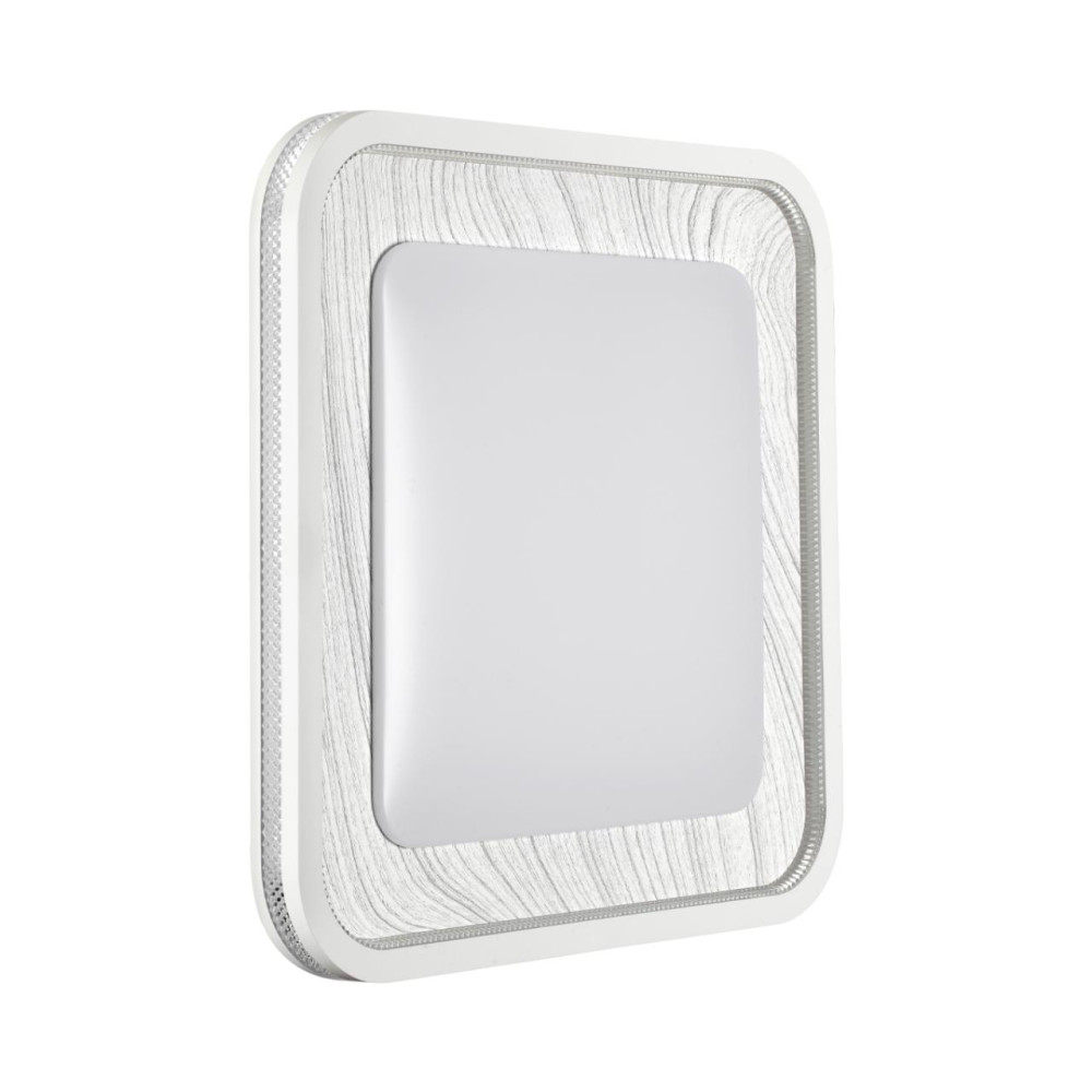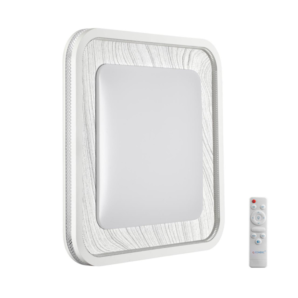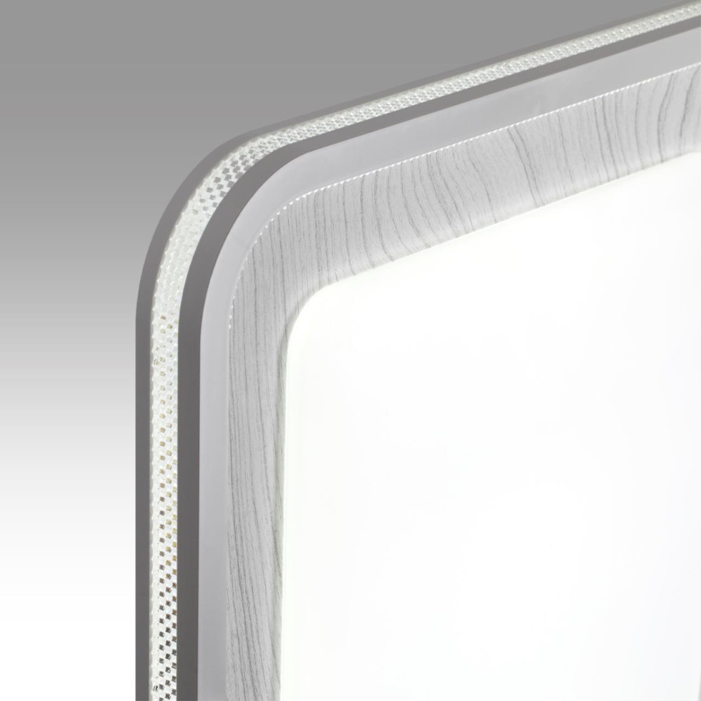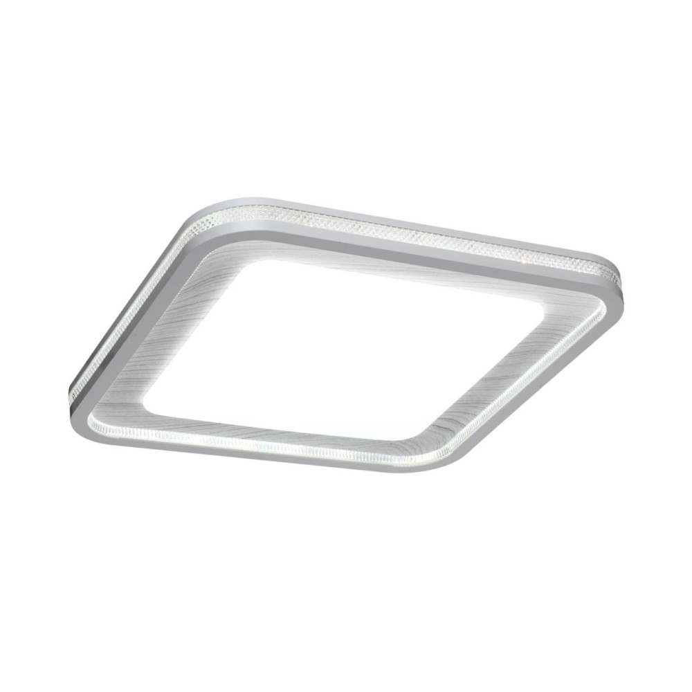 Светильник 7682/EL линии MAVI WOOD состоит из металлического основания (базы) и пластикового рассеивателя. Материал рассеивателя - высококачественный пластик марки PMMA 2.0 белого цвета с матовой поверхностью, без текстуры. Пластик обеспечивает светильнику равномерное рассеивание и хорошее светопропускание. Форма плафона: квадратная, декорирована ободом из пластика светло-серого цвета "под дерево" с прозрачной вставкой "под хрусталь". Степень защиты IP43 позволяет использовать светильник в определенных зонах влажных помещений. В комплект входит заменяемый LED модуль с линзами, мощностью 70Вт, которая соответствует лампе накаливания 610Вт. А также пульт ДУ (с креплением на стену), с помощью которого осуществляется плавное изменение цветовой температуры 3000-6000К, изменение яркости, переход в режим переключения теплого/белого/холодного/ночного света. Светильник имеет функцию "память"
