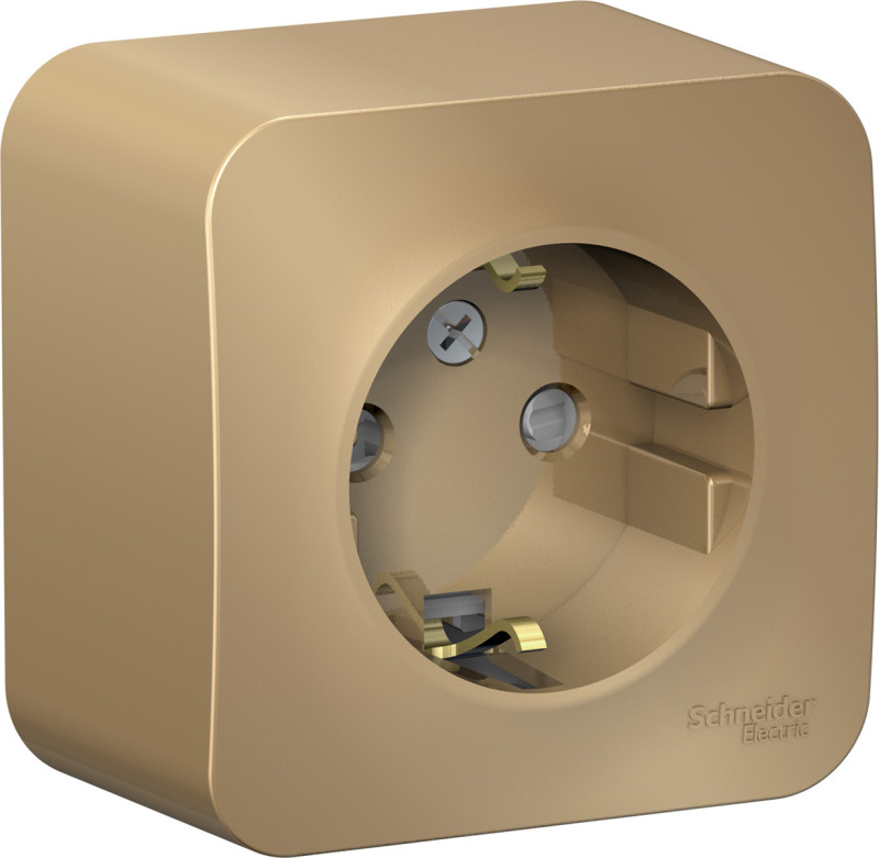Розетка Schneider Electric BLANCA (титан, открытой установки) одноместная с заземлением, шторками и изолирующей пластиной предназначена для сетей до 250В, на ток до 16А. Шторки открываются только при одновременном равномерном давлении в оба отверстия и препятствуют проникновению посторонних предметов. Они обеспечат дополнительную безопасность в доме, где есть дети