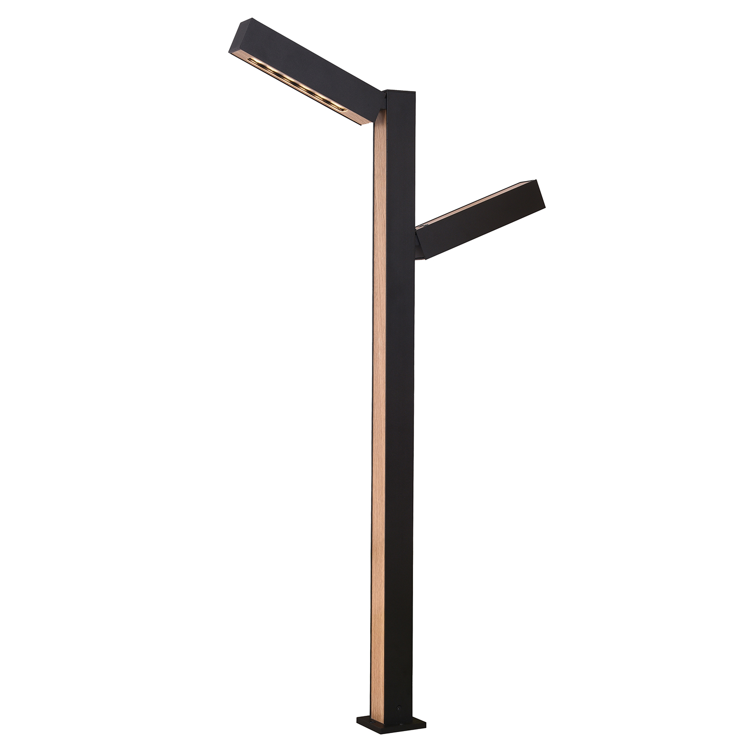 Уличный столб в черном цвете, декорирован вставкой с фактурой дерева, гнездовое строение светодиодного источника света, LED-модуль OSRAM, защита IP54