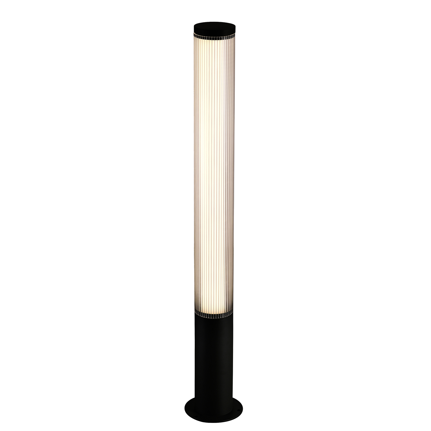Уличный столб в черном цвете, удлиненный плафон состоит из двух частей - внешний плафон из прозрачного рифленого акрила, внутренний плафон белого матового цвета, LED-модуль, защита IP65