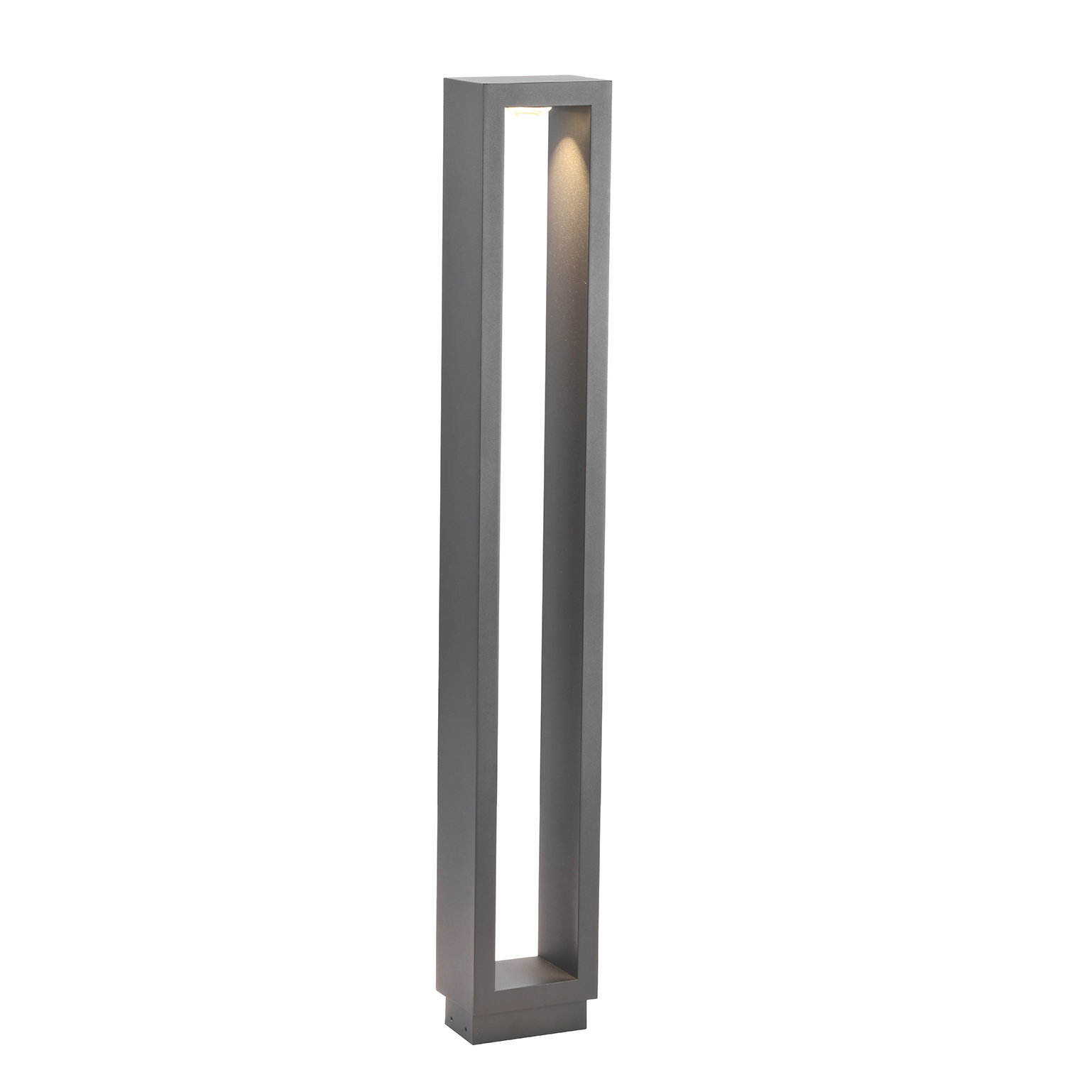 Уличный столб с серым прямоугольным каркасом, в верхней части LED-модуль, рассеиватель из прозрачного акрила, защита IP65