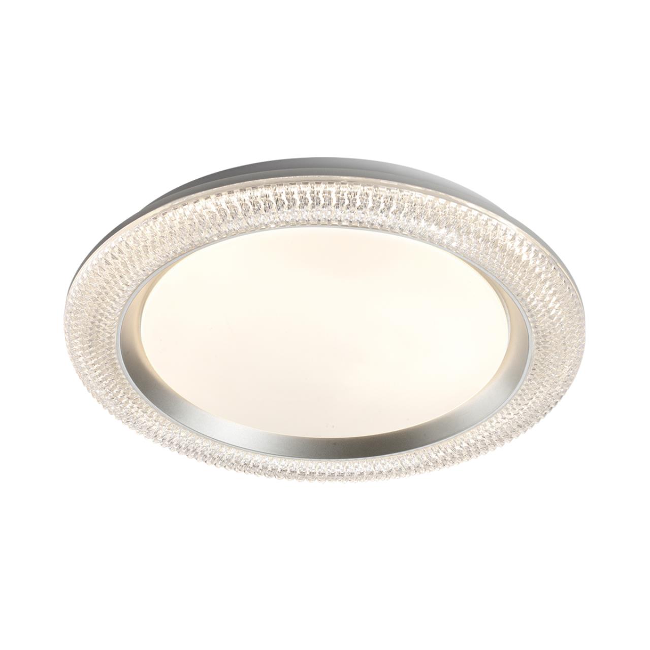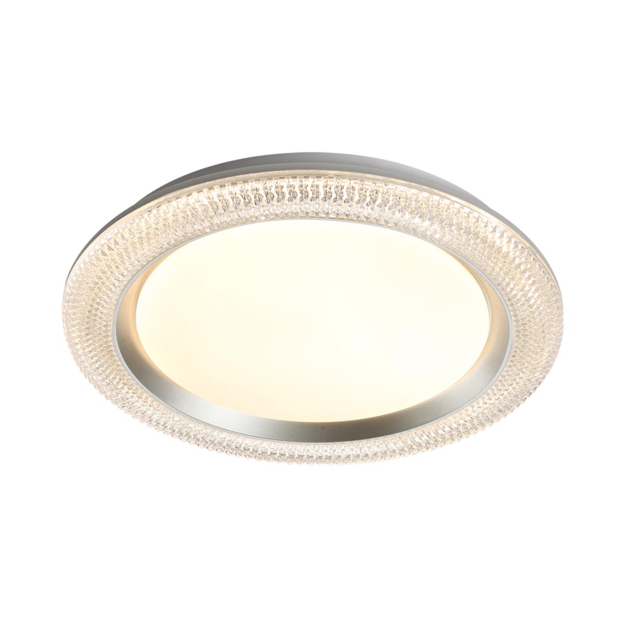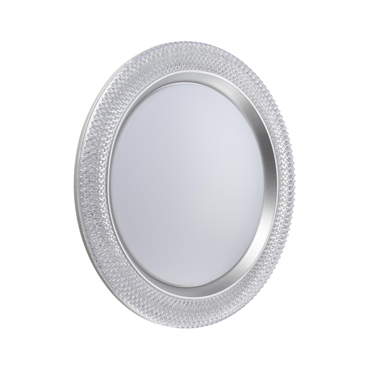 Светильник 7782/DL линии VENDY состоит из металлического основания (базы) и пластикового рассеивателя. Материал рассеивателя - высококачественный пластик марки PMMA 2.0 белого цвета с матовой поверхностью, обеспечивающий светильнику равномерное рассеивание и хорошее светопропускание.Форма плафона круглая, декорирована прозрачным акриловым ободом под хрусталь и кантом серебристого цвета. Степень защиты IP43 позволяет использовать светильник в определенных зонах влажных помещений. В комплект входит заменяемый LED модуль с линзами, мощностью 48Вт, которая соответствует лампе накаливания 440Вт. А также пульт ДУ, с помощью которого осуществляется плавное изменение цветовой температуры 3000-6000К, изменение яркости, переход в режим переключения теплого/белого/холодного/ночного света. Светильник имеет функцию "память"
