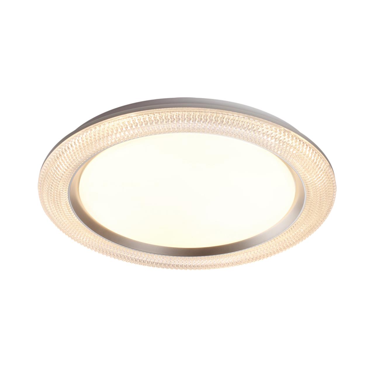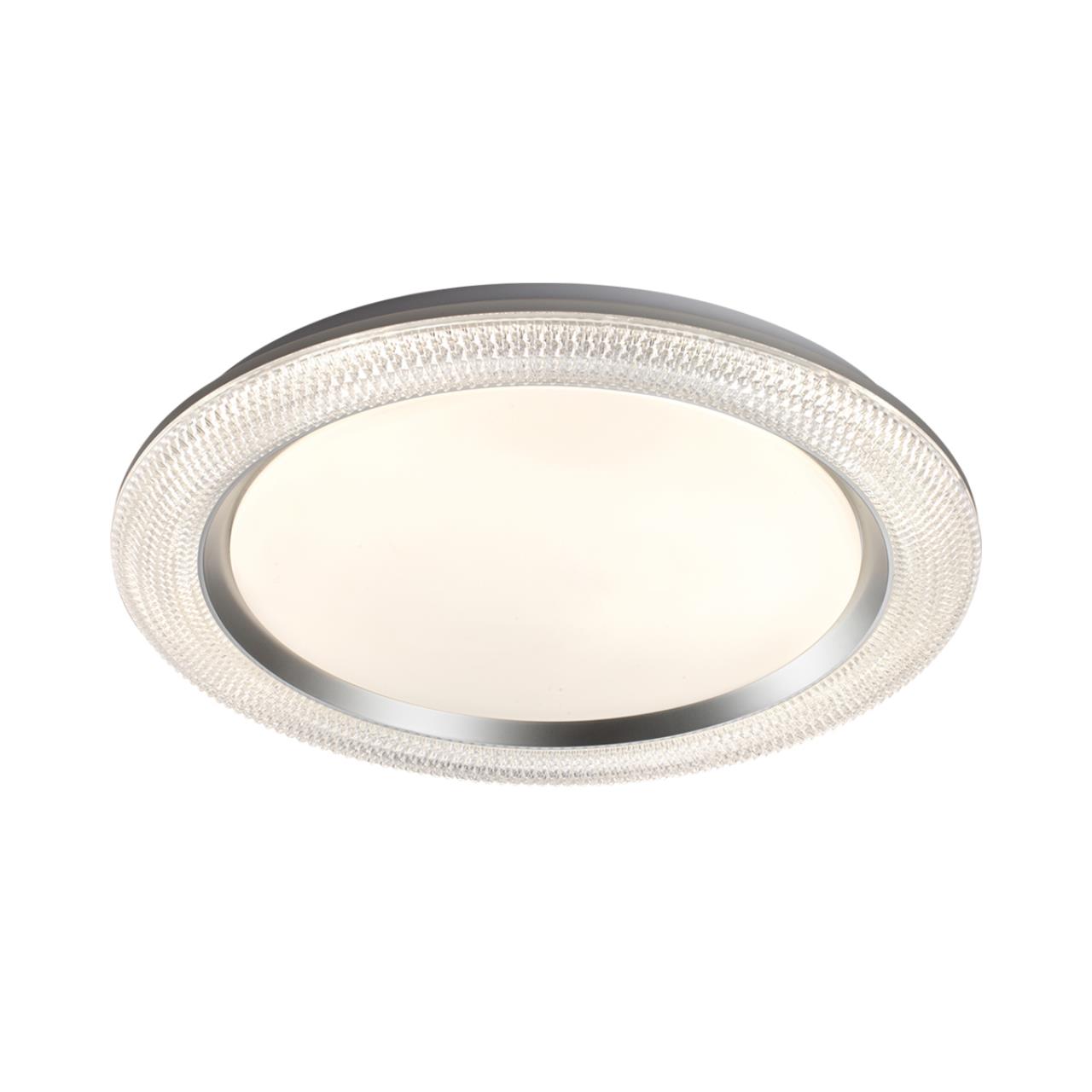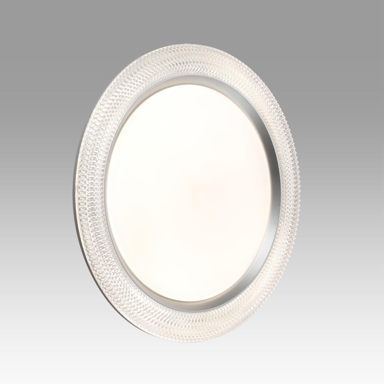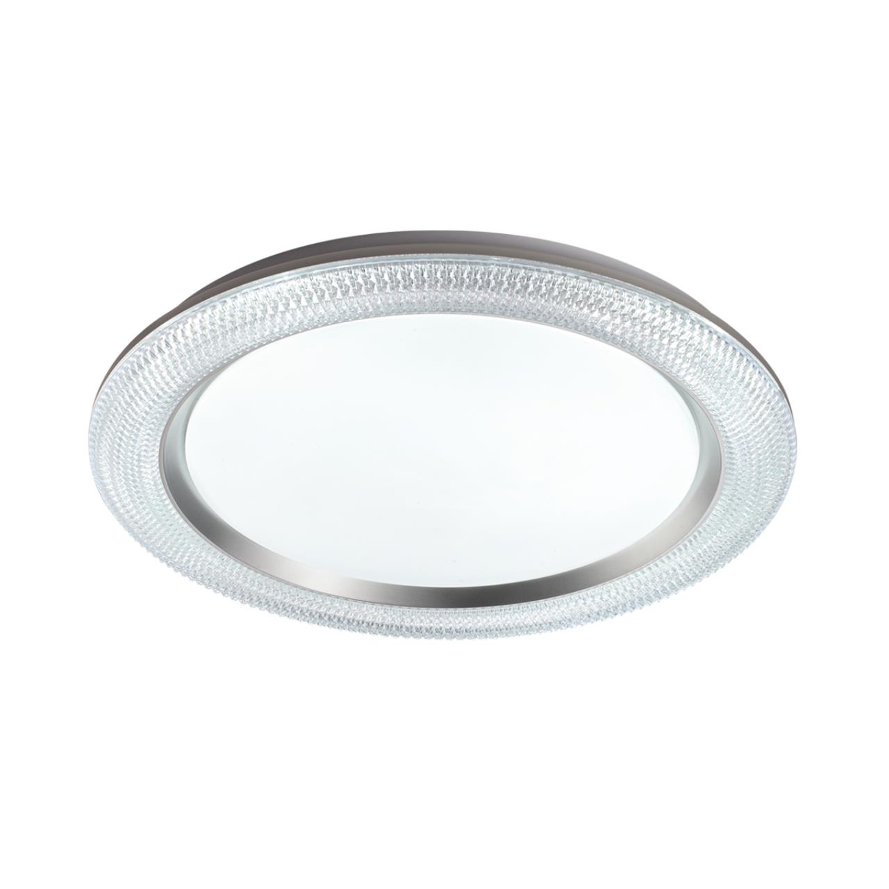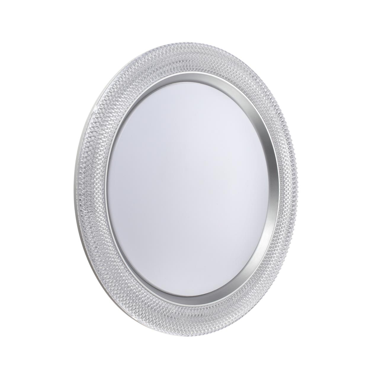 Светильник 7782/ЕL линии VENDY состоит из металлического основания (базы) и пластикового рассеивателя. Материал рассеивателя - высококачественный пластик марки PMMA 2.0 белого цвета с матовой поверхностью, обеспечивающий светильнику равномерное рассеивание и хорошее светопропускание.Форма плафона круглая, декорирована прозрачным акриловым ободом под хрусталь и кантом серебристого цвета. Степень защиты IP43 позволяет использовать светильник в определенных зонах влажных помещений. В комплект входит заменяемый LED модуль с линзами, мощностью 70Вт, которая соответствует лампе накаливания 610Вт. А также пульт ДУ, с помощью которого осуществляется плавное изменение цветовой температуры 3000-6000К, изменение яркости, переход в режим переключения теплого/белого/холодного/ночного света. Светильник имеет функцию "память"