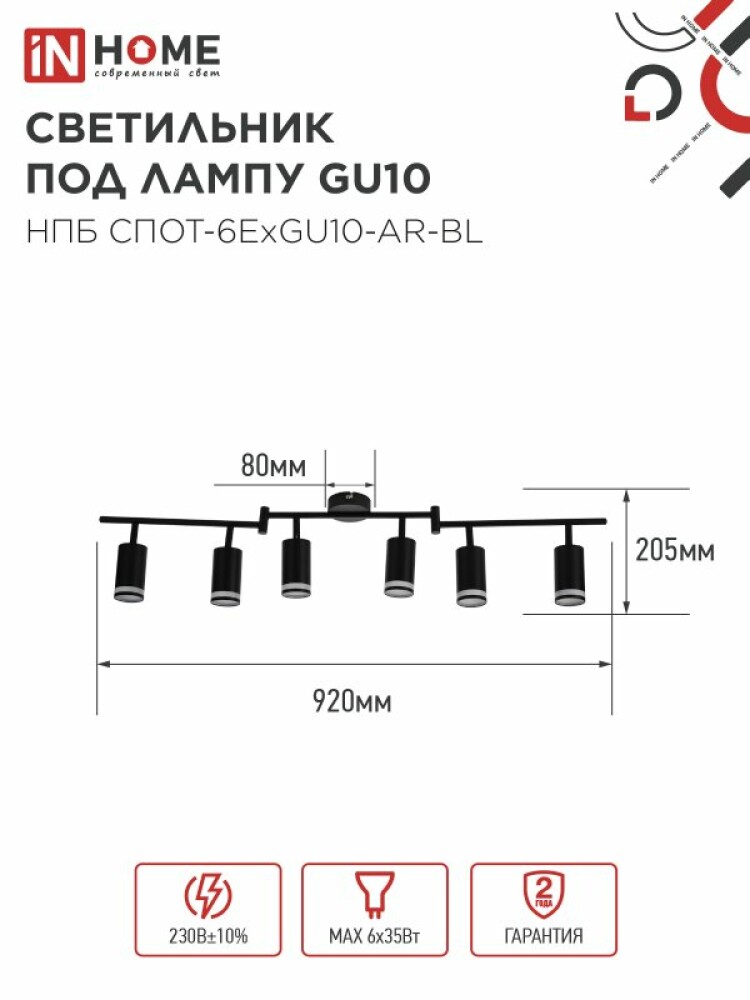 Светильник потолочный НПБ СПОТ-6ExGU10-AR-BL под GU10 IN HOME 4690612058269
