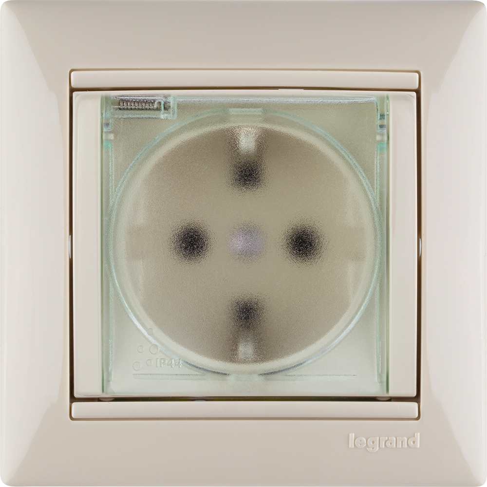 Розетка 2К+З с откидной крышкой и шторками бжевая Legrand Valena Classic 774120